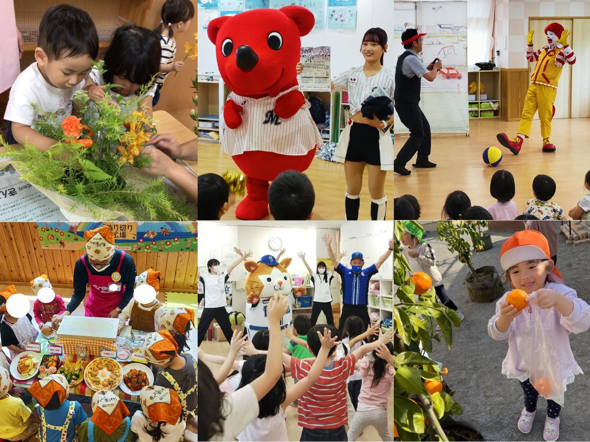 ハンバーガーショップやパン屋さん、クレープ屋さん、お魚屋さんなどの飲食店をはじめ、野球球団やサッカークラブ、地域企業とも幅広く連携し、こどもたちの興味や関心を広げる機会を提供しています。園内で“見て・知って・体験して学ぶ「本物の体験」”は、こどもたちのワクワクを引き出し、将来の夢や憧れにもつながっています。さらに、食・仕事(職業紹介)・環境などの社会課題やSDGsにも関わる内容も取り入れ、こどもたちが身近な社会や職業への関心を育むきっかけにもつながっています。