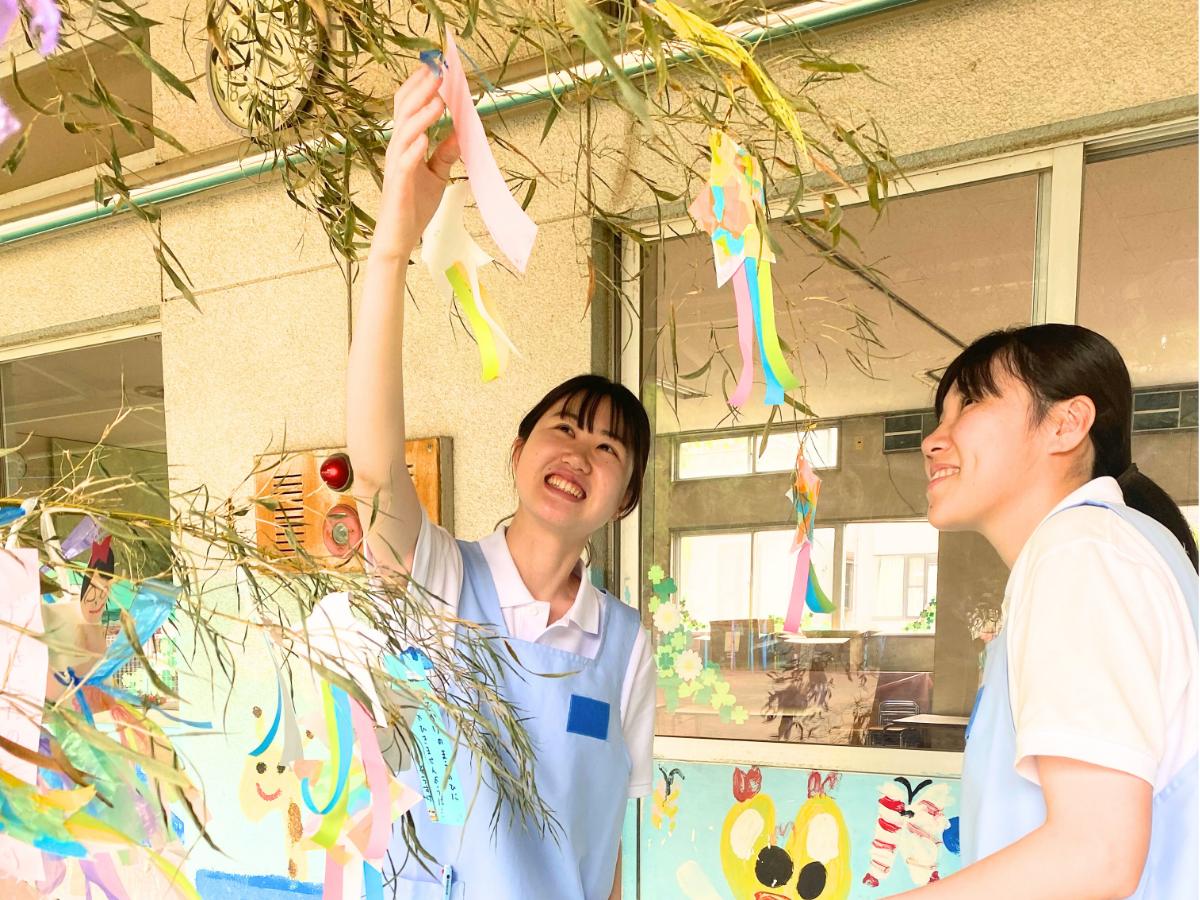 初めての保育実習先が今の保育園でした。とても緊張していた私に先生方が優しく話しかけてくれて、どの先生も優しく教えてくれたことがすごく嬉しかったです。他の保育園にも実習で行きましたが、アスクは先生とこどもたちの距離が近く、こどもたちが活動を生き生きしていたのが印象的でした!