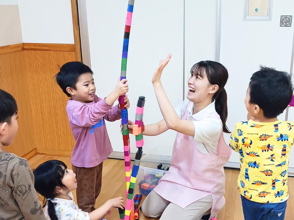 今は入社5年目です!1歳児からずっと持ち上がり担任で同じこどもたちを見ているので、数年前と比べた成長を日々感じられてすごくやりがいがあります。元々幼稚園で悩んでいたのですが、やっぱり小さい頃からこどもたちの成長を長く見届けられるのは、保育だからこその魅力だなと感じています。