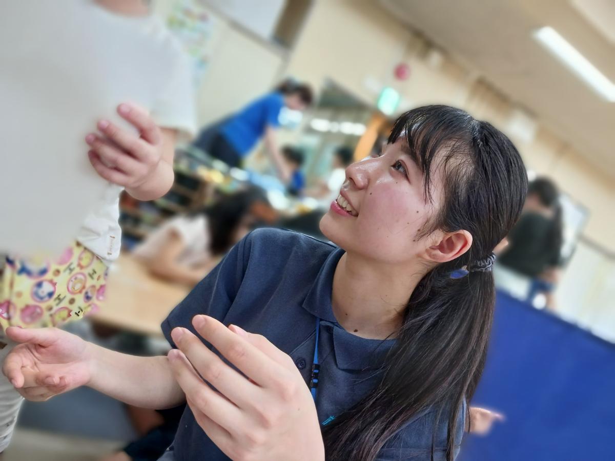 こども同士のトラブルの際に状況把握や声掛けを自信を持ってできるように、先輩たちの動きを見て、日々学んでいる。一緒に働く先生たちも優しいので、わからないことは教えてくれる環境があって心強い。
